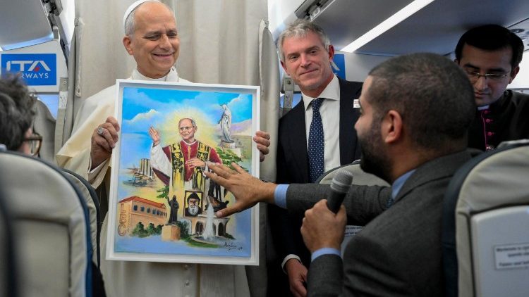 En el vuelo de regreso del Líbano a Roma, León XIV se reúne con los periodistas y habla del papel de la Santa Sede, que trabaja «entre bastidores» en las negociaciones de paz para que las partes depongan las armas. En cuanto a Ucrania, destaca la implicación de Europa y la importancia del posible papel de Italia. Responde a una pregunta sobre cómo reaccionó ante la elección en el cónclave y sobre su espiritualidad: entregar la vida a Dios y dejar que sea él «el jefe».